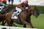Retrogradé de la première à la quatrième place d'un quinté de même facture, le 23 mai à Longchamp, UN AIR DE SALSA (n°10) a pris une éclatante revanche sur le sort, ce lundi, en s'adjugeant le Prix de Compiègne, épreuve retenue pour les paris à la carte. Après avoir sagement patienté au coeur du peloton, le représentant de Stéphane Wattel (photo) placait une accélération décisive dans la phase finale pour dominer la situation dans les 50 derniers mètres. Si le fils de Green Tune tenait enfin son premier événement, il permettait à Raphael Marchelli d'épingler une 35e réalisation dans les handicpas-quintés. Toujours vu au contact des leaders, DANCING MAN (n°13) devait se contenter du premier accessit devant TAKYRO (n°14), à créditer d'un bon effort final en pleine piste. Pugnace jusqu'au bout, NON STOP (n°6) se classait quatrième après avoir toujours pointé aux avant-postes. Un instant contrarié dans sa progression, LANDO JUNIOR (n°7) complétait la combinaison gagnante du quinté.