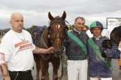 Piccolo San - © aprhAvec dix-huit compétiteurs qui se rangeront à un même échelon de départ, il risque d'y avoir de la bagarre dans les premiers mètres de course. En effet, sur le parcours classique de la grande piste et dans ce type de catégorie, il est préférable d'occuper rapidement une bonne place. Adepte de la course en tête, PETRONE DU VIVIER (16) a les moyens de parvenir à ses fins. Auquel cas, ses rivaux auront du souci à se faire car le fils d'In Love With You a les moyens de les user au train comme il l'a démontré à maintes reprises, à Enghien, au cours du dernier été, ou au printemps, dans le temple du trot. Figurant en deuxième position dans la sélection de notre pronostiqueur vedette, Christian Senecal (puisse-t-il faire aussi bien que Daniel, hier...), il occupe le même classement au betting, ce matin, où les parieurs lui préfèrent nettement PICCOLO SAN (13), à un peu plus de 2/1. Il faut dire que ce récent lauréat d'un quinté, à Cabourg (photo), a depuis confirmé qu'il doublerait prochainement la mise, se classant notamment deuxième de l'étape marseillaise du GNT derrière l'intouchable Riglorieux du Bois (une sacrée ligne). Avec l'aide de Matthieu Abrivard et d'un parcours sans encombre, le trotteur nordiste devrait parvenir à ses fins. Cela dit, outre PETRONE DU VIVIER, il y a quelques sérieux clients à prendre en compte. Ainsi PEPA (17) ne monte pas du Sud-Ouest pour faire de la figuration et Denis Brossard rate rarement sa cible lorsqu'il effectue le déplacemet en région parisienne. MONTANA BOY (18) découvre ici l'un des derniers bons engagements de sa carrière. A lui d'en profiter ! OFFICIAL SECRET (14), ancienne bonne valeur, se retrouve peu à peu et Franck Nivard sera aux commandes... Enfin, il convient de ne pas oublier que cette compétition est estampillée européenne. Dans ces conditions, il serait étonnant de ne pas retrouver un ou deux "étrangers" dans l'une des bonnes combinaisons. Christian vous en recommande deux : BOWLING INFERNO (2) et UWYNE D'ERPION (1). S'ils sont les moins riches, ils sont loin d'être les moins doués comme ils l'ont souvent prouvé sur notre sol...