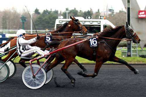 Décidément, depuis le 1er janvier, les "ULK" ont le vent en poupe dans les Quintés+. Après le succès d'Ulk du Las Végas, le 1er janvier, c'est au tour d'un autre 6-ans dépendant d'un petit effectif, celui de Gilbert Sorieux et non plus celui de Jacques Fernandes, de faire main basse sur un événement programmé dans le temple du trot... Drivé de main de maître par Franck Ouvrie, ULK DE GODISSON (photo) a sagement attendu son heure au sein du peloton avant de porter son attaque dans le dernier tournant. Soutenant bien son effort jusqu'au bout, celui qui venait de débuter l'année de la meilleure des façons, s'imposait avec autorité malgré la belle défense d'USTOU, qui a longtemps semblé faire un canter avant de tomber sur plus fort dans les derniers décamètres. Toujours vu en bon rang, UROC DU GOUTIER complétait le podium devant UNIX DES FORGES, venu de loin bien conclure, côté corde et l'extrême outsider ULYSSE DES MARAIS qui profitait de la disqualification d'UN SATINROSE, platonique cinquième. A noter la déception causée par les deux favoris, UN REVE D'HAUFOR, qui a marqué le pas après avoir animé les débats et URBAIN DE GUEZ, disqualifié dans le dernier tournant.