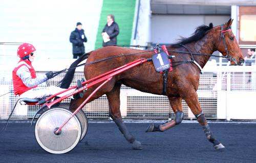 "Lorsqu'il est à Grosbois il se réveille un peu plus. En outre, le cheval était extra au heat et j'ai eu la chance d'avoir un bon parcours." C'est en ces termes que Jean-Michel Bazire commente le succès de son protégé SECRET DE CHENU (photo) dans le Prix de Meslay-du-Maine, quinté+ de ce mercredi à Vincennes. Relayé par TOBROUK DE PAYRE pour aborder la montée, le fils de Késaco Phedo a en effet bénéficié d'un bon déroulement de course, trouvant l'ouverture à 150 mètres du but pour venir ajuster le précédent cité, pugnace jusqu'au bout. Rapproché progressivement, en troisième épaisseur, TROPIC DU HETRE prolongeait bien son effort pour se classer troisième devant TROU NORMAND, qui a bien fini aprè avoir attendu son heure au coeur du peloton et SUPER BERRY CHENOU, toujours pointé dnas le groupe de tête.