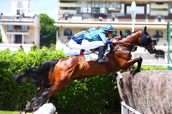 GIANICOLO AA a vite pris la direction des opéations du Prix Robert de Clermont-Tonnerre. Malheureusement, il est tombé à la rivière des tribunes. AMOUR DU MATHAN (son jockey avait perdu ses étriers) n'a pu l'éviter, chutant à son tour. La course s'est décantée après le saut du gros open-ditch. POLY GRANDCHAMP (photo) a alors pris l'avantage, puis au début du dernier tournant, il a commencé à se détacher. Pour finir, le hongre de 8 ans entraîné par François Nicolle n'a pas rencontré d'opposition, l'emportant comme à la parade. Le premier accessit est revenu au régulier ENJEU D'ARTHEL, toujours vu aux avant-postes. SAINTE SAONE s'est bien rapprochée dans la phase finale, venant de l'arrière-garde, et a pris la troisième place. KAPDAM s'est emparé d'une méritoire quatrième place, tandis que MEREDITH devait se contenter de la cinquième place après avoir longtemps galopé en bon rang.