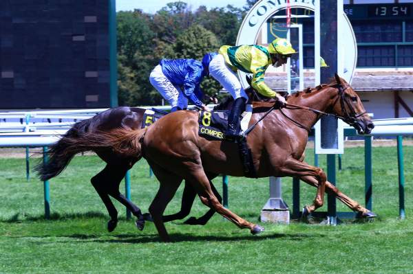 TOP MAX a mené quasiment depuis le départ de ce Grand Prix de Marseille, 13ème Etape du Défi du Galop. Au poteau des 400 derniers mètres, le pensionnaire d'Henri-Alex Pantall a commencé à subir les attaques. Et il n'a pu longtemps résister aux "Rossi (Cédric et Frédéric), SKAZINO (photo) et KENWAY. KENWAY a eu l'avantage jusqu'aux abords du poteau, mais dans un ultime coup de reins, à l'issue d'un beau match à deux, SKAZINO est parvenu à prendre le meilleur. En retrait des deux premiers, DIAMOND VENDOME, qui avait constamment galopé aux avant-postes au côté de TOP MAX, a arraché la troisième place en résistant courageusement à l'attaque de RICHEMONT. Déception avec TOP MAX qui a dû se contenter de la cinquième place.
