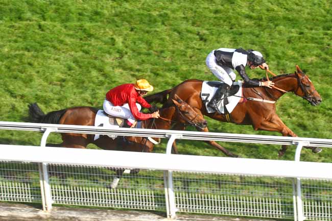 En photo, VAPALO (7) et D. MESCAM s'imposent dans le PRIX CHAKHANSOOR Ă AUTEUIL (R1C8) - Mardi 23 septembre 2014