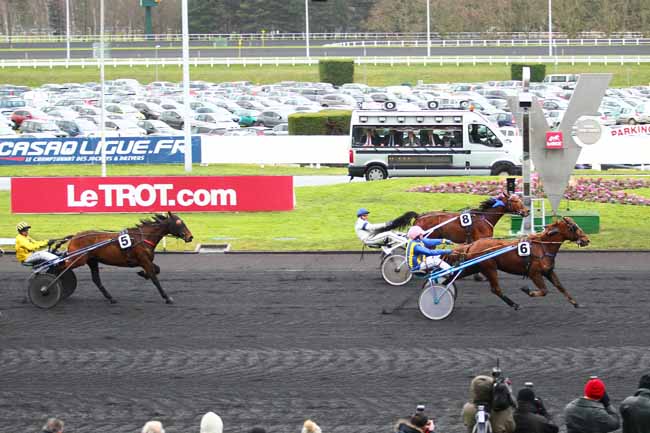 En photo, VIVIEN (6) et A. CHEVRIER s'imposent dans le PRIX DE BAUGE à PARIS-VINCENNES (R1C3) - Dimanche 1 février 2015