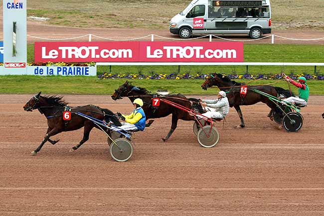 En photo, VINTAGE (6) et F. SAMSON s'imposent dans le PRIX DE BERVILLE Ă CAEN (R1C5) - Vendredi 13 mars 2015