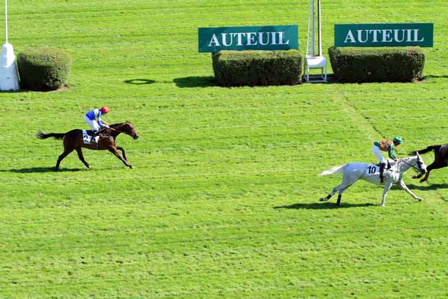En photo, CHEB DE KERVINIOU (10) et M. DELAGE s'imposent dans le PRIX MANDARIN Ă AUTEUIL (R1C7) - Samedi 24 septembre 2016