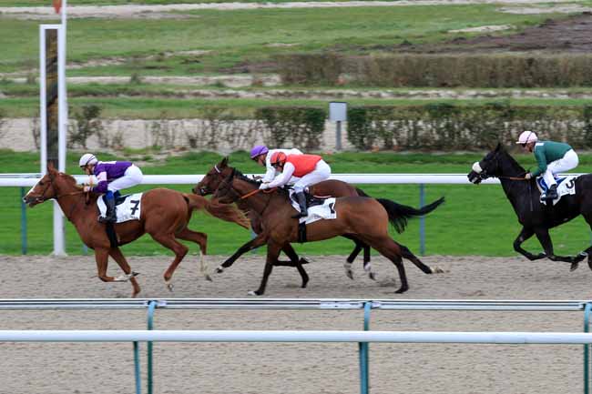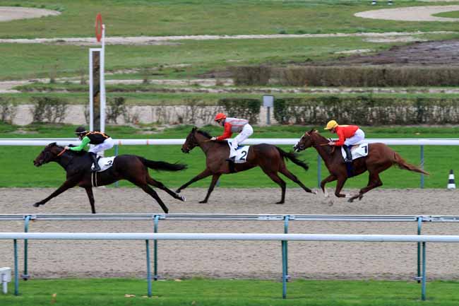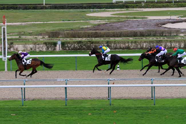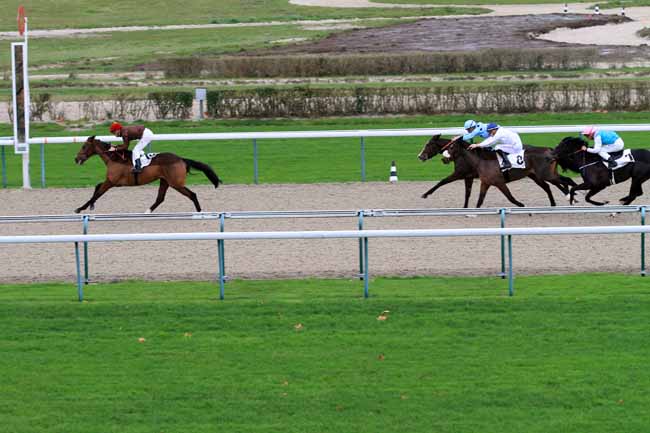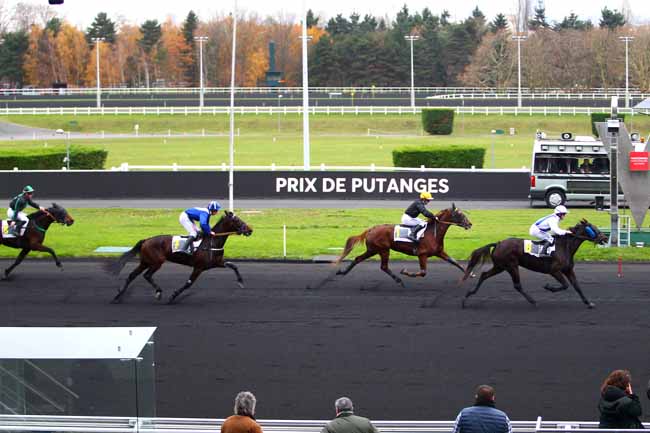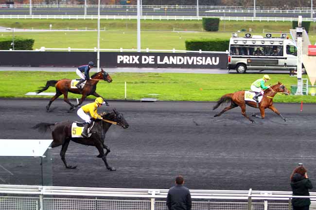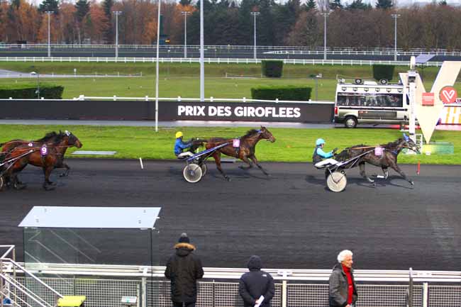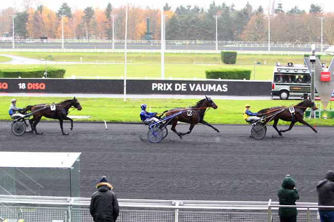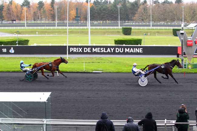 En photo, ATHIS DELADOU (18) et J.-M. BAZIRE s'imposent dans le PRIX DE MESLAY-DU-MAINE Ă PARIS-VINCENNES (R1C2) - Lundi 27 novembre 2017
