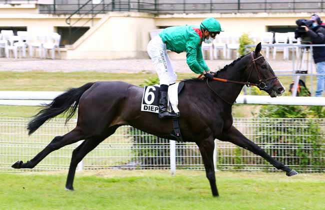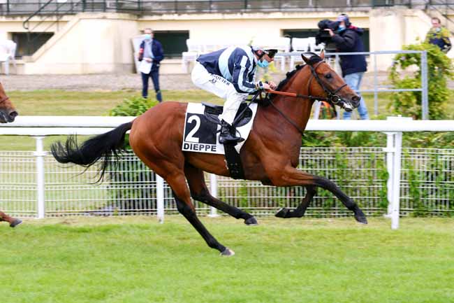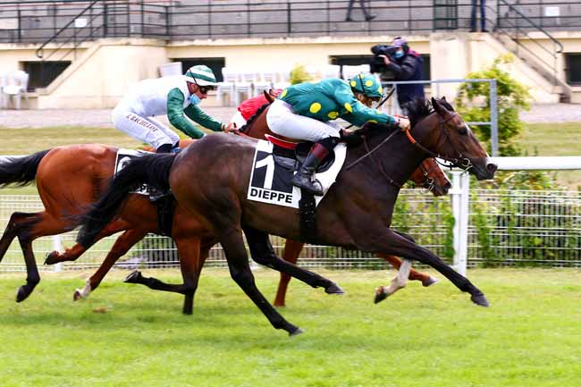 En photo, ASHTARA (6) et C. SOUMILLON s'imposent dans le PRIX DU PALAIS DE LA DECOUVERTE Ă DIEPPE (R2C6) - Vendredi 12 juin 2020