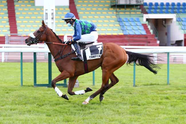 En photo, RUBAN VERT (7) et B. BERENGUER s'imposent dans le PRIX COLOMBELLES Ă COMPIEGNE (R4C8) - Samedi 13 juin 2020