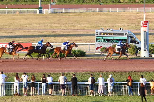 En photo, DREAM DE LASSERIE (13) et R. DERIEUX s'imposent dans le PRIX DU MEDOC Ă ENGHIEN (R1C4) - Mercredi 22 juillet 2020