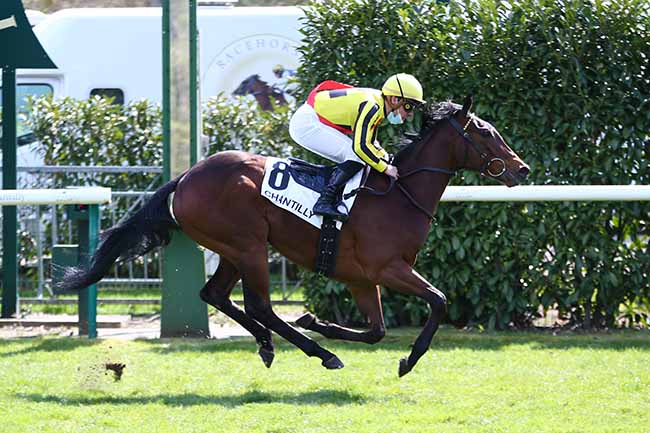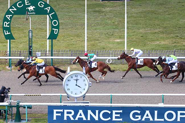 En photo, KENOHOPE (7) et C. DEMURO s'imposent dans le PRIX DE L'INSTITUT DE FRANCE Ă CHANTILLY (R1C8) - Mardi 13 avril 2021