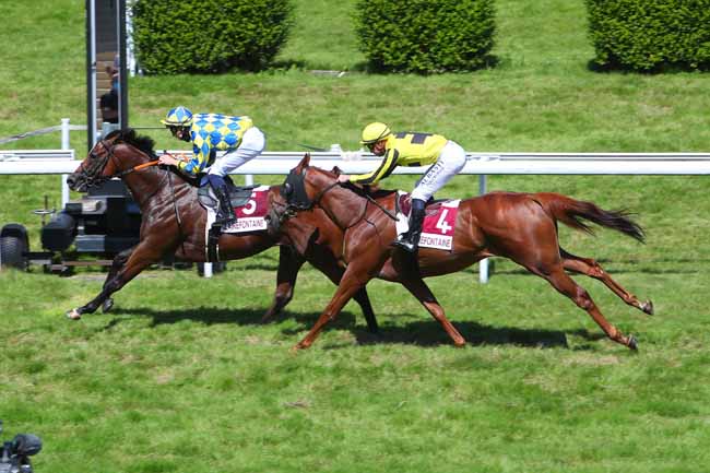 En photo, INSUS (15) et DESMIGNEUX F. s'imposent dans le PRIX DES IFS à CABOURG (R1C8) - Vendredi 13 août 2021