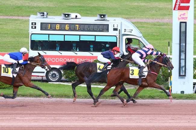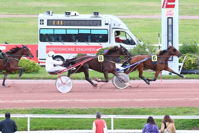 En photo, GIPSY DU RIED (6) et RAFFESTIN J. s'imposent dans le PRIX DE LA PORTE DE SAINT-MANDE Ă ENGHIEN (R1C8) - Lundi 11 octobre 2021