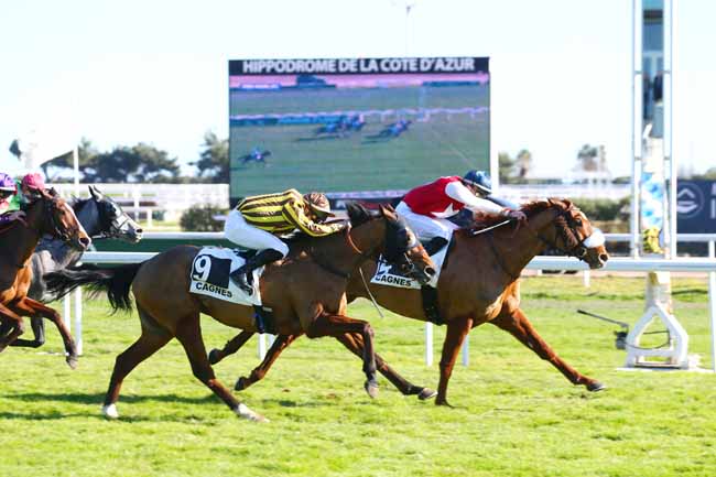 En photo, MARIANACHIC (2) et GUYON M. s'imposent dans le PRIX SKY LAWYER à CAGNES-SUR-MER (R1C2) - Mardi 8 février 2022