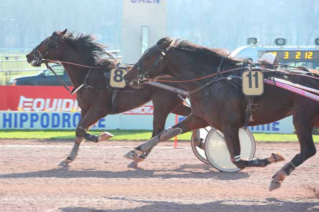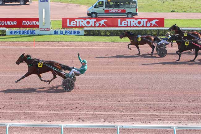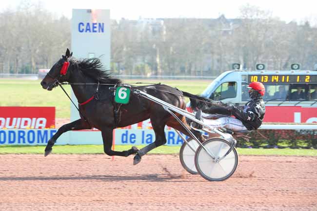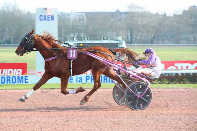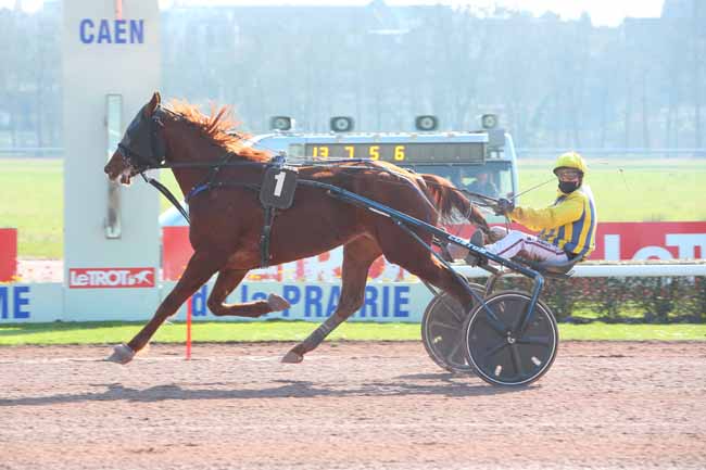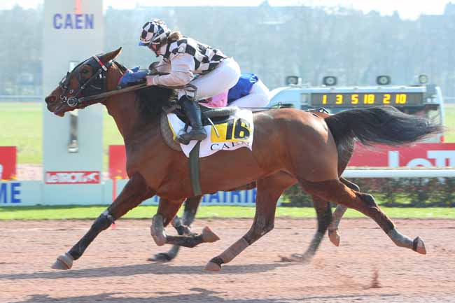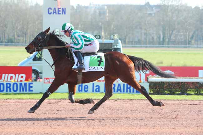 En photo, GOUTIER CELESTE (7) et MOTTIER M. s'imposent dans le PRIX DE GACE Ă CAEN (R1C5) - Lundi 7 mars 2022