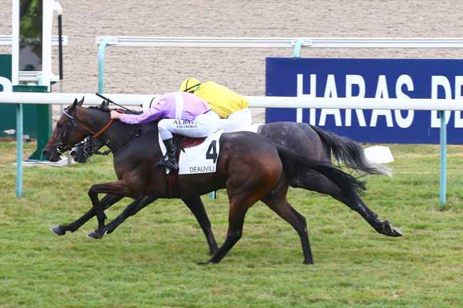 En photo, SONDERBAR (10) et LEMAITRE A. s'imposent dans le PRIX DU QUAI DE LA QUARANTAINE à DEAUVILLE (R1C9) - Dimanche 14 août 2022