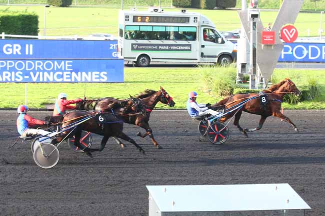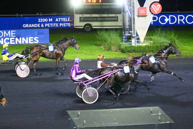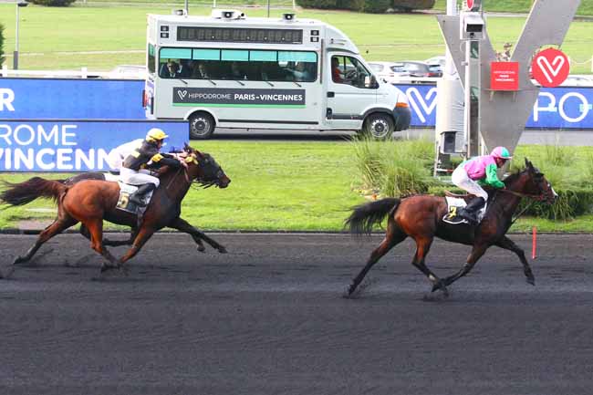 En photo, JUST LOVE YOU (8) et ABRIVARD A. s'imposent dans le PRIX URANIE Ă PARIS-VINCENNES (R4C2) - Samedi 29 octobre 2022