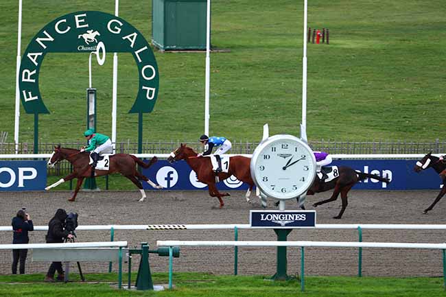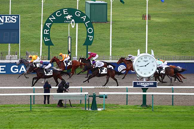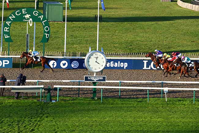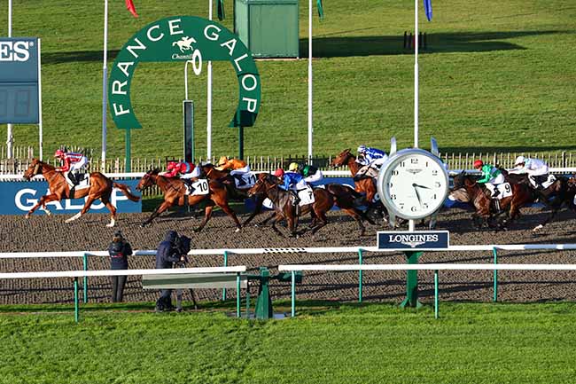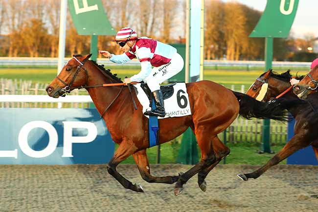 En photo, FAST RAAJ (6) et GUYON M. s'imposent dans le PRIX DU CARREFOUR DES HAUTES COUTUMES Ă CHANTILLY (R3C8) - Vendredi 18 novembre 2022