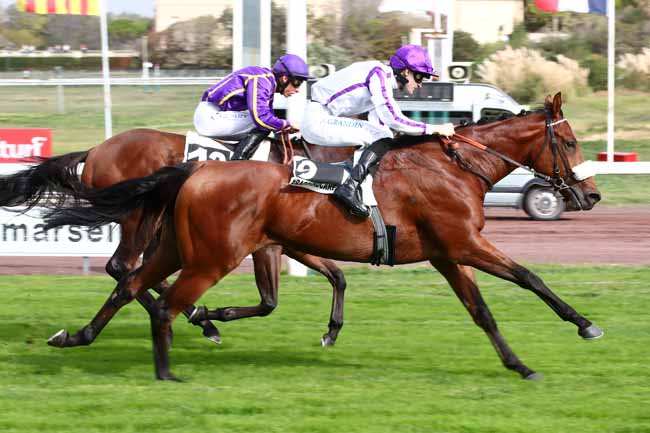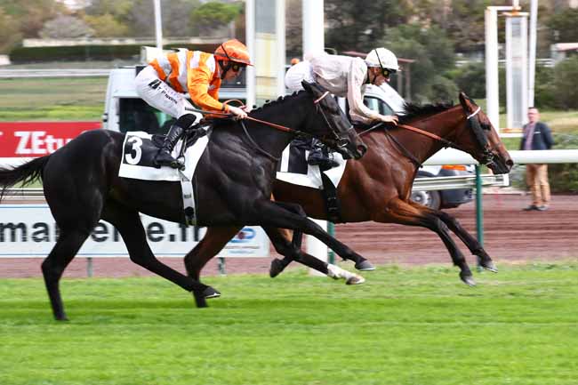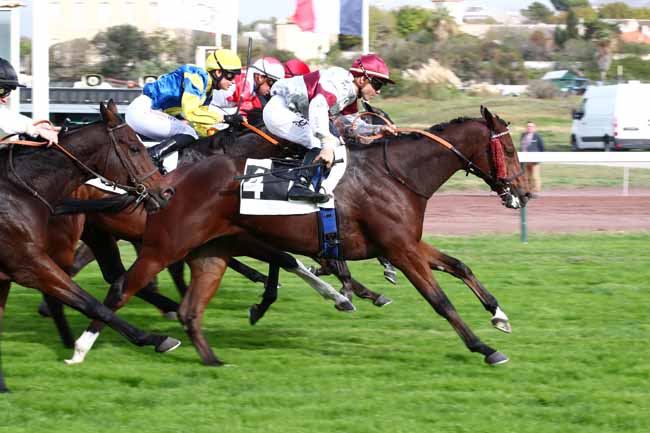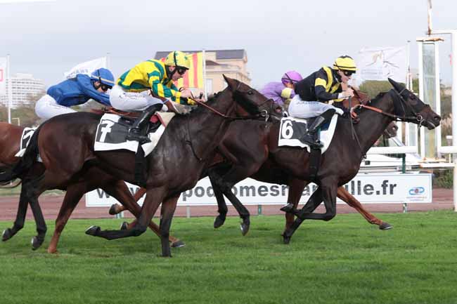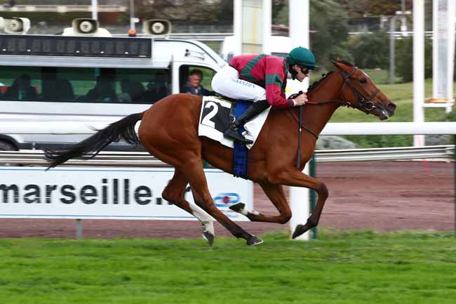 En photo, INVESTISSEUR (9) et GRANDIN M. s'imposent dans le PRIX #RACEANDCARE (PRIX DE BELSUNCE) Ă MARSEILLE BORELY (R1C5) - Lundi 23 octobre 2023