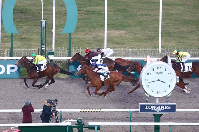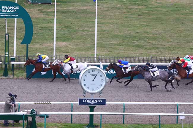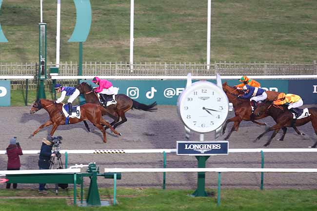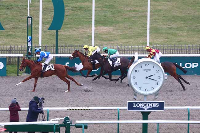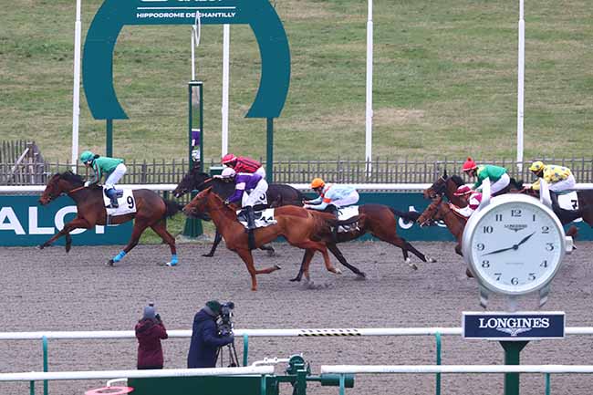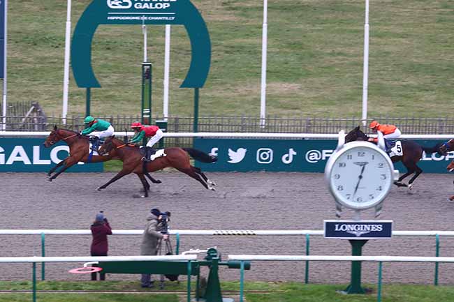 En photo, IRTYCH (9) et AKIMASA PHANTHURA s'imposent dans le PRIX SPREOTY Ă CHANTILLY (R3C3) - Samedi 13 janvier 2024