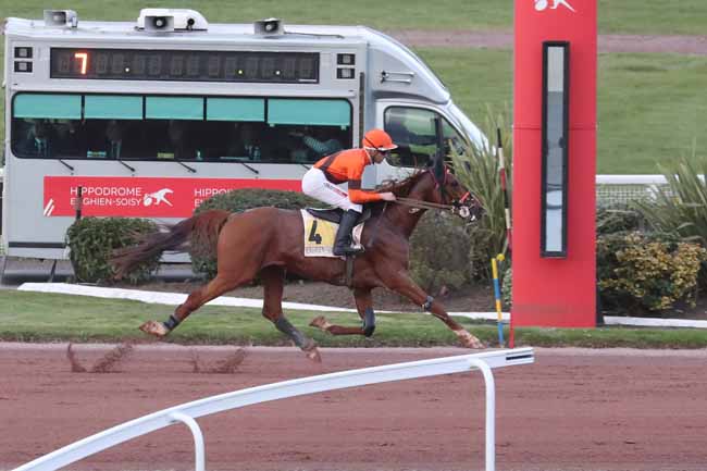 En photo, KEROSEN DU GERS (5) et NIVARD F. s'imposent dans le PRIX DE SAINT-PIERRE-LE-MOUTIER Ă ENGHIEN (R1C2) - Vendredi 8 mars 2024
