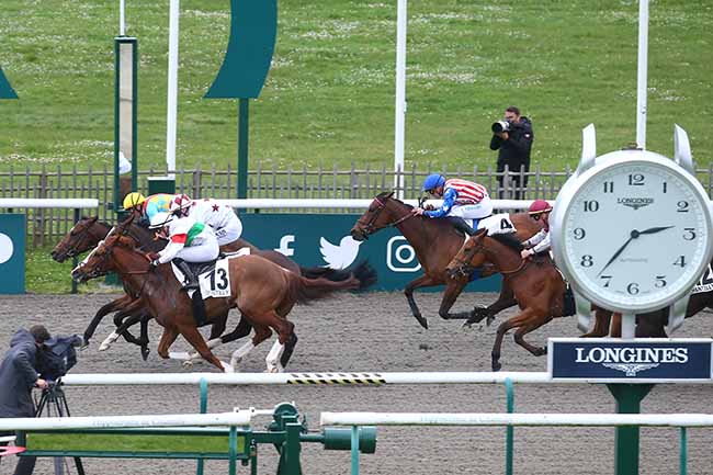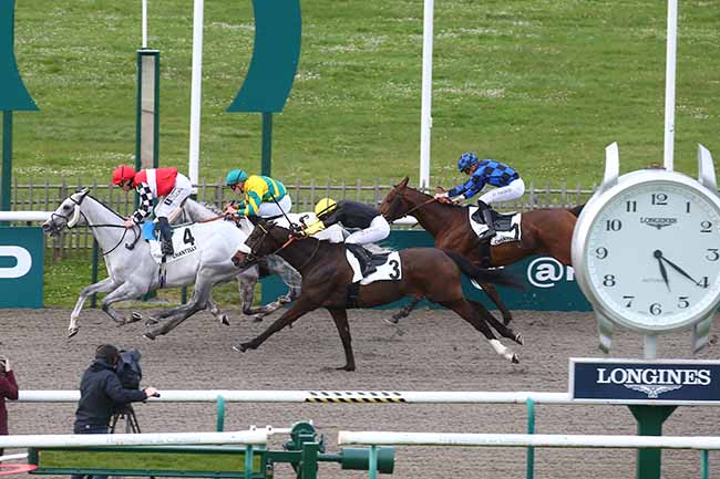En photo, LE NOMADE (1) et JOURNIAC H. s'imposent dans le PRIX DE LA JOURNEE DES PLANTES Ă CHANTILLY (R1C5) - Samedi 30 mars 2024