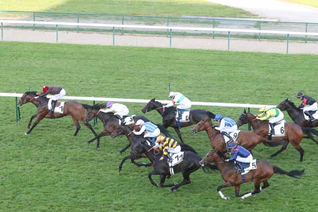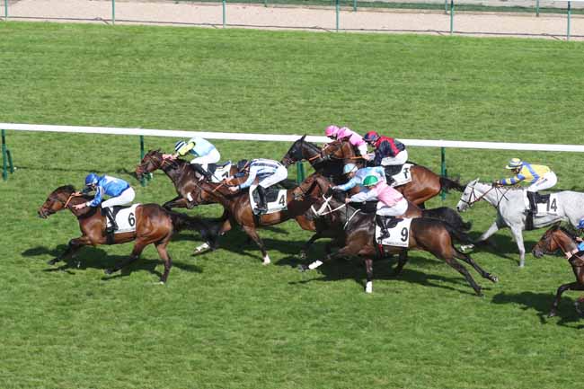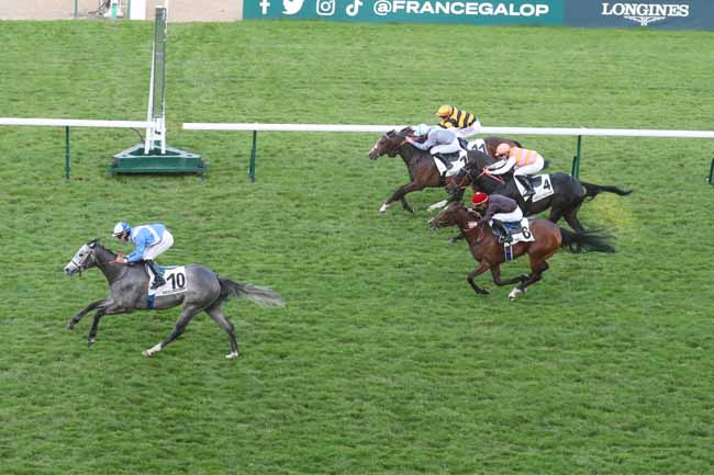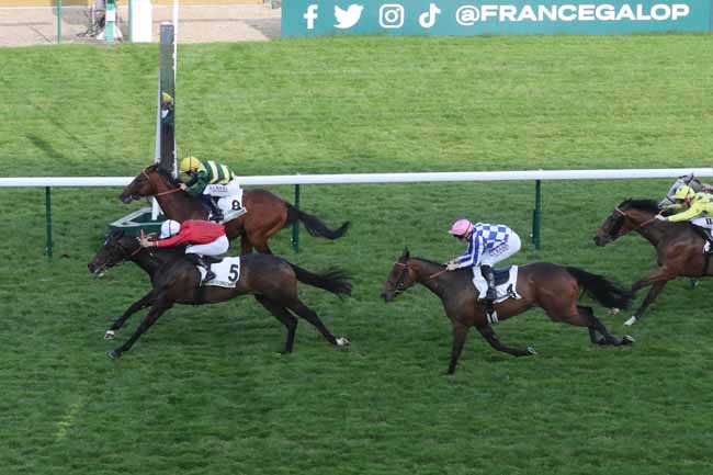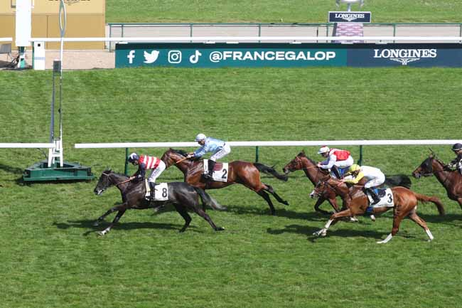En photo, KARIOITAHI (6) et BERGE C. s'imposent dans le PRIX DU PETIT BOIS Ă LONGCHAMP (R1C2) - Jeudi 9 mai 2024