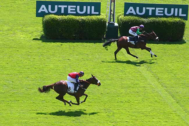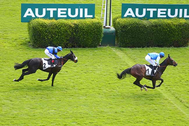 En photo, DJIN'S (9) et NABET K. s'imposent dans le PRIX FRASCATI Ă AUTEUIL (R1C1) - Mardi 25 juin 2024