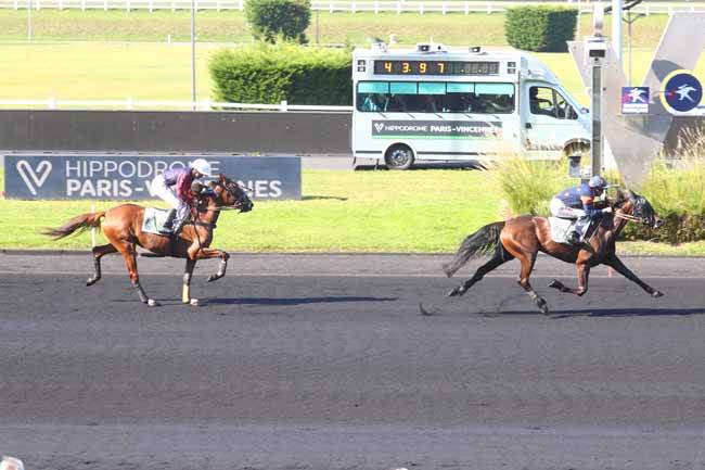En photo, KILL JOY LADY (8) et DUVALDESTIN THEO s'imposent dans le PRIX DE L'HIPPODROME DE MAURON Ă PARIS-VINCENNES (R1C7) - Jeudi 19 septembre 2024