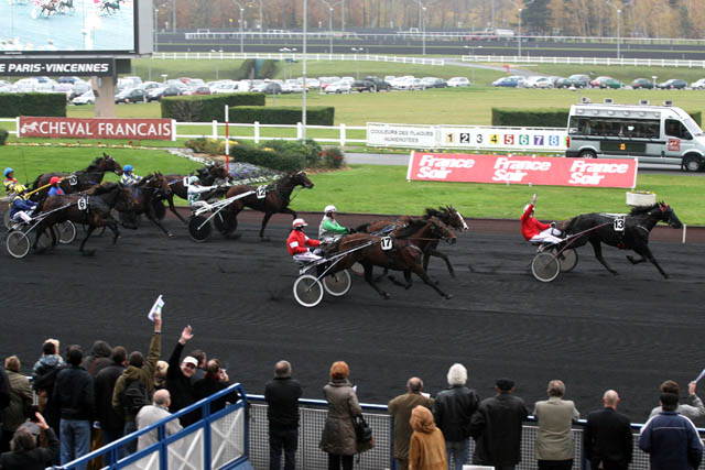 En photo, OLGA DU BIWETZ (13) et VERBEECK J. s'imposent dans le PRIX FRANCE SOIR (PRIX DE BRETAGNE) Ă PARIS-VINCENNES (R1C3) - Samedi 15 novembre 2008