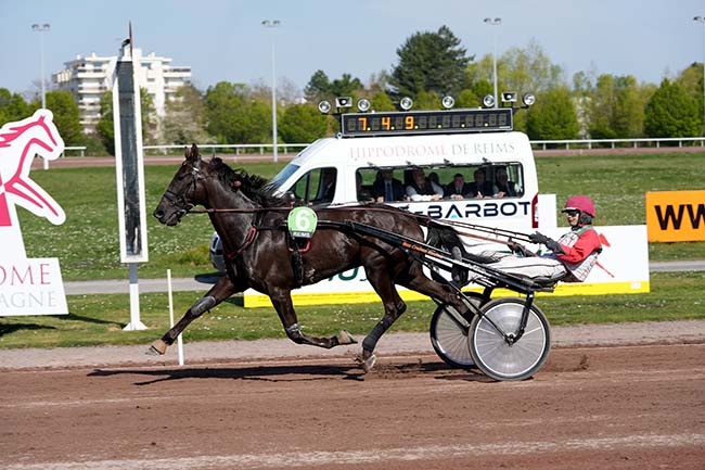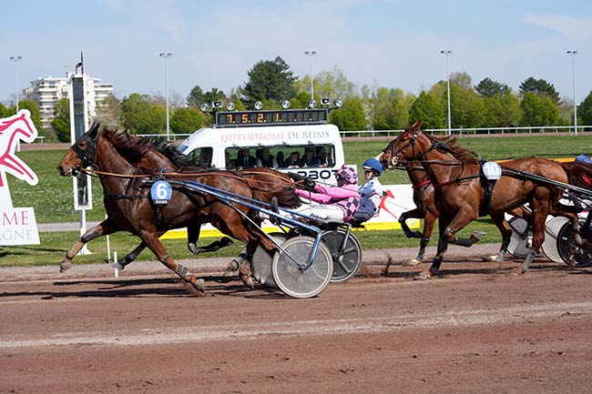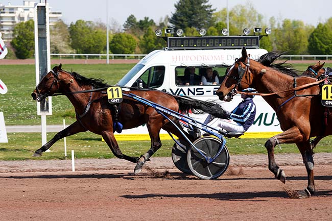 En photo, JAMIN DE BRION (11) et ABRIVARD M. s'imposent dans le GRAND NATIONAL DU TROT Ă REIMS (R1C1) - Mercredi 9 avril 2025