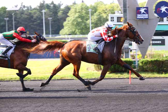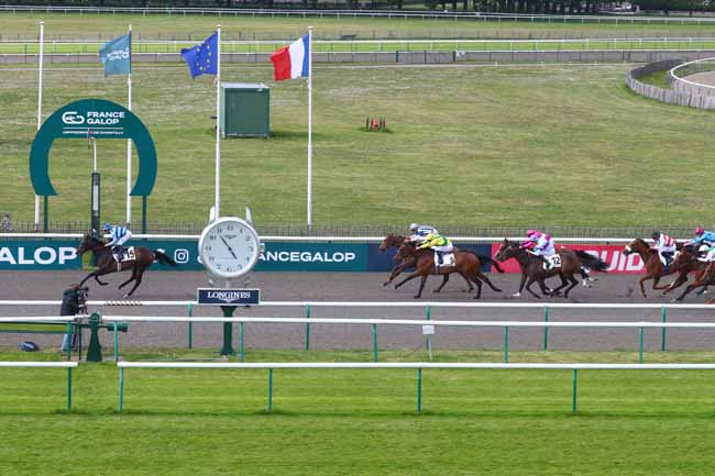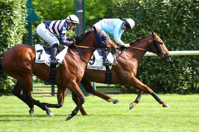 En photo, GAME RUN (2) et GRANDIN M. s'imposent dans le PRIX DE MONTAGNY Ă CHANTILLY (R1C1) - Mardi 6 mai 2025