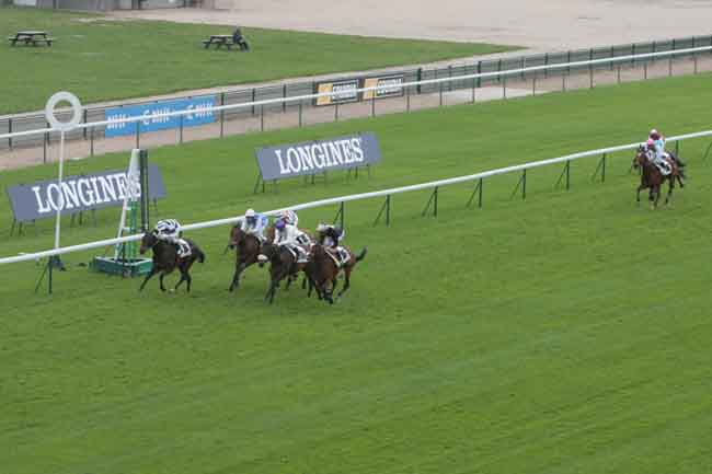 En photo, GLORIOUS SIGHT (3) et MAILLOT S. s'imposent dans le PRIX DU LOUVRE Ă LONGCHAMP (R1C5) - Lundi 4 avril 2011