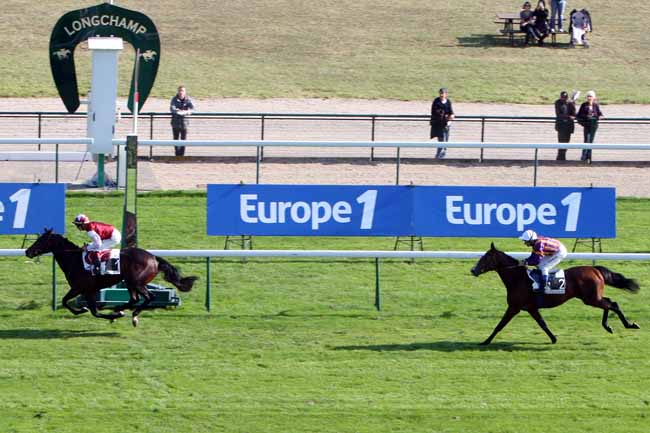 En photo, MANDAEAN (1) et M.GUYON s'imposent dans le PRIX DE BELLEVILLE Ă LONGCHAMP (R1C2) - Dimanche 16 octobre 2011