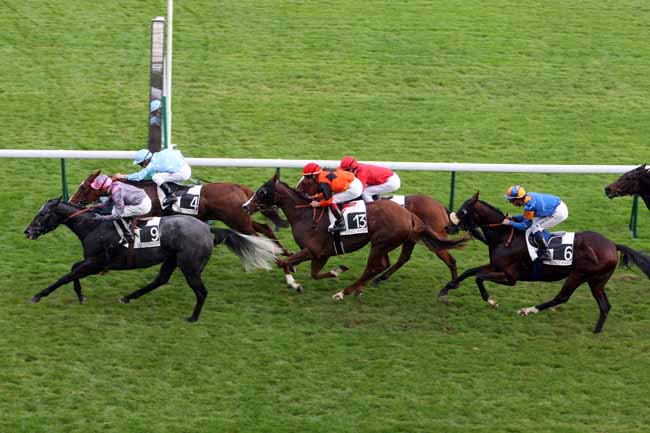 En photo, HONORABILITE (9) et D.BONILLA s'imposent dans le PRIX DU MUSEE DES ARTS DECORATIFS Ă LONGCHAMP (R1C7) - Vendredi 28 octobre 2011