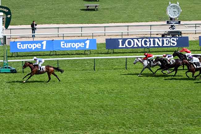 En photo, SOLEMIA (10) et O. PESLIER s'imposent dans le PRIX LORD SEYMOUR Ă LONGCHAMP (R1C5) - Jeudi 19 avril 2012