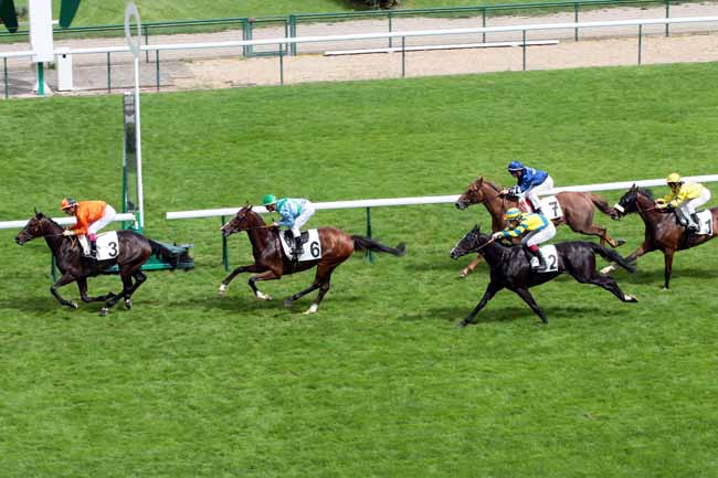 En photo, GOLDEN CLUB (3) et C. SOUMILLON s'imposent dans le PRIX DE LA PYRAMIDE Ă LONGCHAMP (R1C6) - Lundi 11 juin 2012