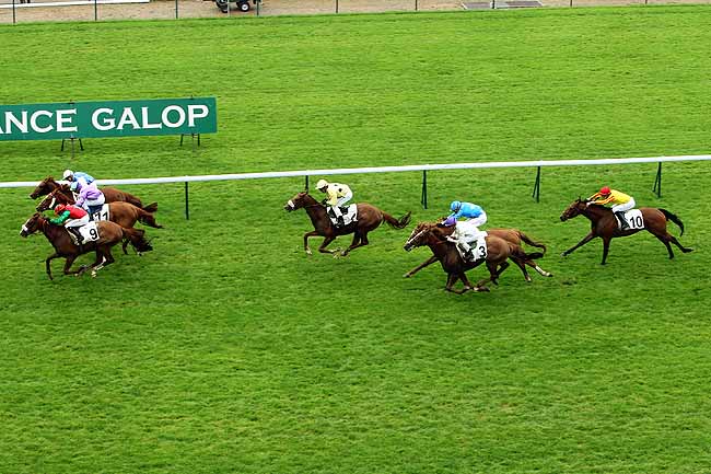 En photo, ARTHUR THE KING (9) et J. VICTOIRE s'imposent dans le PRIX DES EPINETTES Ă LONGCHAMP (R1C1) - Mardi 21 mai 2013