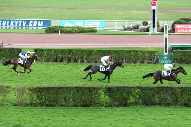 En photo, ESFAHAN (3) et D. COTTIN s'imposent dans le PRIX DU TREPORT Ă ENGHIEN (R1C8) - Samedi 26 octobre 2013