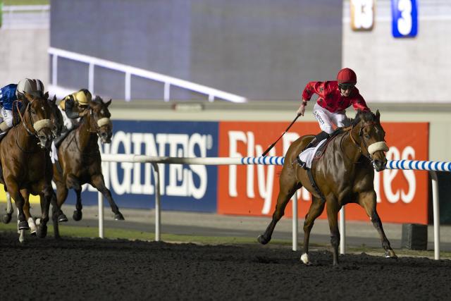 En photo, TOUCH GOLD (5) et D. MUSCUTT s'imposent dans le WHEELS Ă MEYDAN (R3C2) - Samedi 18 janvier 2014