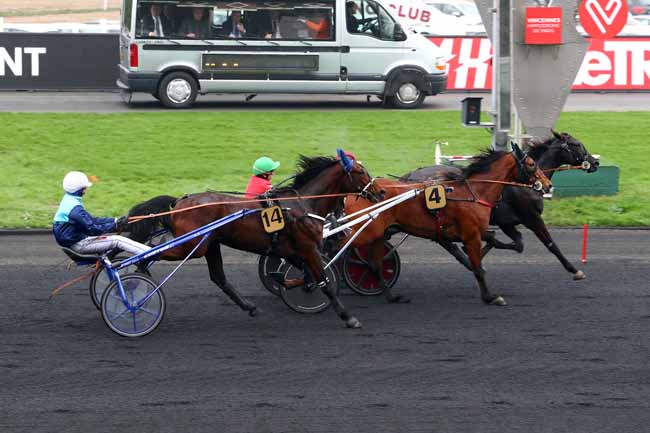 FLOCKI D'AURCY et Y. LEBOURGEOIS s'imposent dans le PRIX DE CHATEAUBRIANT Ă PARIS-VINCENNES (R1C1) - Samedi 27 janvier 2018