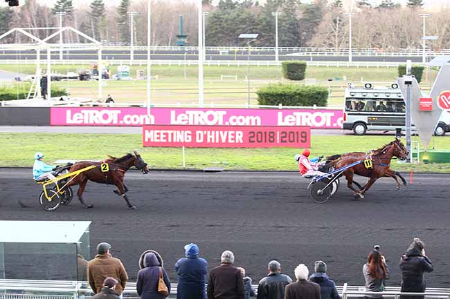 ELLORA DU CEDRE et D. THOMAIN s'imposent dans le PRIX DE CHEVILLY Ă PARIS-VINCENNES (R1C4) - Lundi 28 janvier 2019