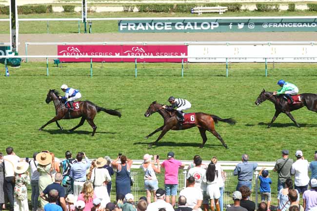 MOJAVE RIVER et GUYON M. s'imposent dans le ARQANA SERIES DES POULICHES à DEAUVILLE (R1C1) - Jeudi 15 août 2024