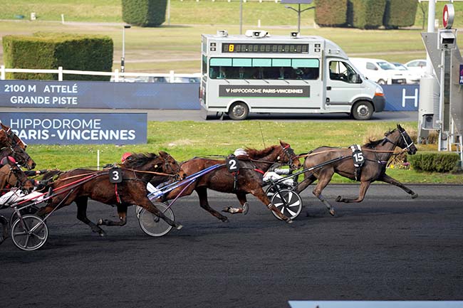 HORIZON D'EYMY et DEPUYDT KRI. s'imposent dans le PRIX DE CHAMPTOCE Ă PARIS-VINCENNES (R1C2) - Samedi 1 mars 2025